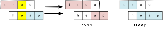 Рассмотрим слова “tree” и “heap”, у которых общая буква 'e' (для определенности