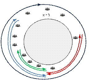 Аман может двигаться по кругу в обоих направлениях. Переход Амана в соседний сектор