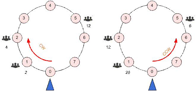 двигаясь от нулевого до i-ого по часовой стрелке, а затем от нулевого до (i + 1)-го против