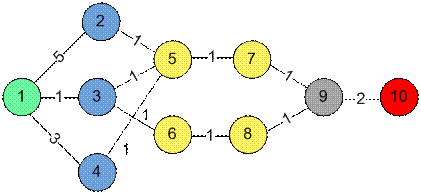 граф из примера. Вершина 1 является истоком, вершина 10 стоком.