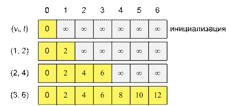 второй тест. Рассмотрим как изменяется состояние массива dp с обработкой очередной