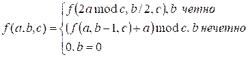 Пусть f(a, b, c) = (a ∗ b) mod c. Для