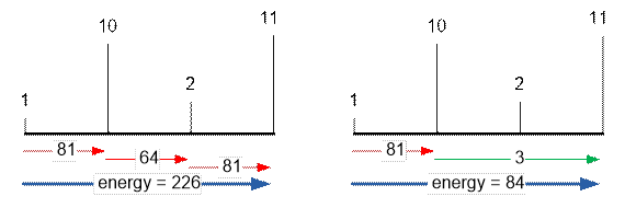 2, 11. Вычислим энергии, которые следует потратить герою для попадания на
