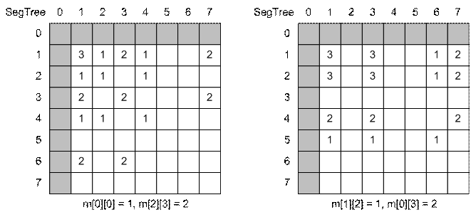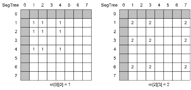 отрезков для моделирования запросов на массиве m будет иметь вид квадратной матрицы SegTree размера 8 * 8 (нулевая