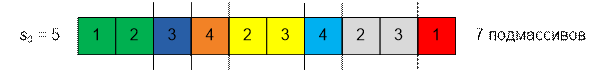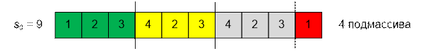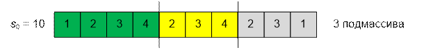 возможные разбиения массива на подмассивы при различных значениях s0: