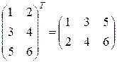заданной матрице А построим транспонированную B, где Bij = Aji.