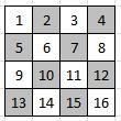 доски. Клетка в строке i и стобце j является белой, если сумма i + j четная. Вычислим сумму чисел, записанных