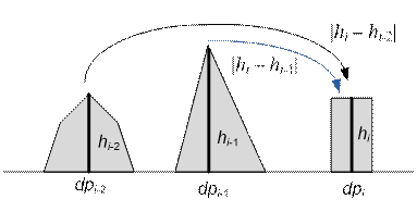 dp[3] = min( dp[2] + |h3 – h2| , dp[1] + |h3 – h1| ) =