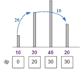 dp[4] = min( dp[3] + |h4 – h3| , dp[2] + |h4 – h2| ) =