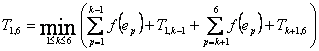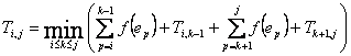 Пусть Ti,j равно стоимости оптимального бинарного дерева поиска, которое можно построить из элементов ei, ei+1, …, ej. Очевидно, что Ti,i = 0 (стоимость дерева поиска из одной вершины равно нулю). Для i < j имеет место рекуррентность: