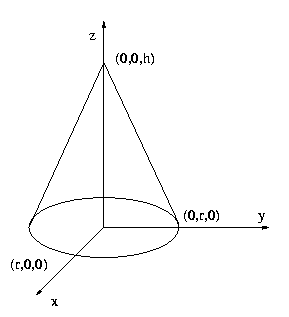 и центром в точке (0, 0, 0) лежит в плоскости z = 0. Вершина конуса