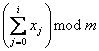 Находим все элементы целочисленной последовательности xi и сохраняем их в массиве x. Находим все частичные суммы построенной последовательности, взятые по модулю m. Положим