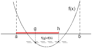 Если f(g) > f(h), то точка минимума лежит на отрезке [g; b], поэтому полагаем a = g.