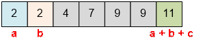 We have: a = 2, b = 2. Since a + b + c = 11, then c = 11 – ab = 11 – 2 – 2 = 7.