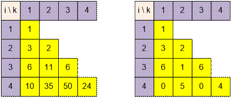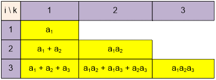 products of k integers chosen from the first i integers a1, …, ai. Let us construct the following table