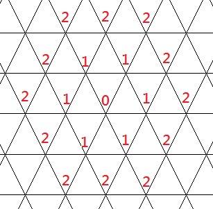 треугольной решётке каждая вершина имеет 6 соседей. Следовательно, первый